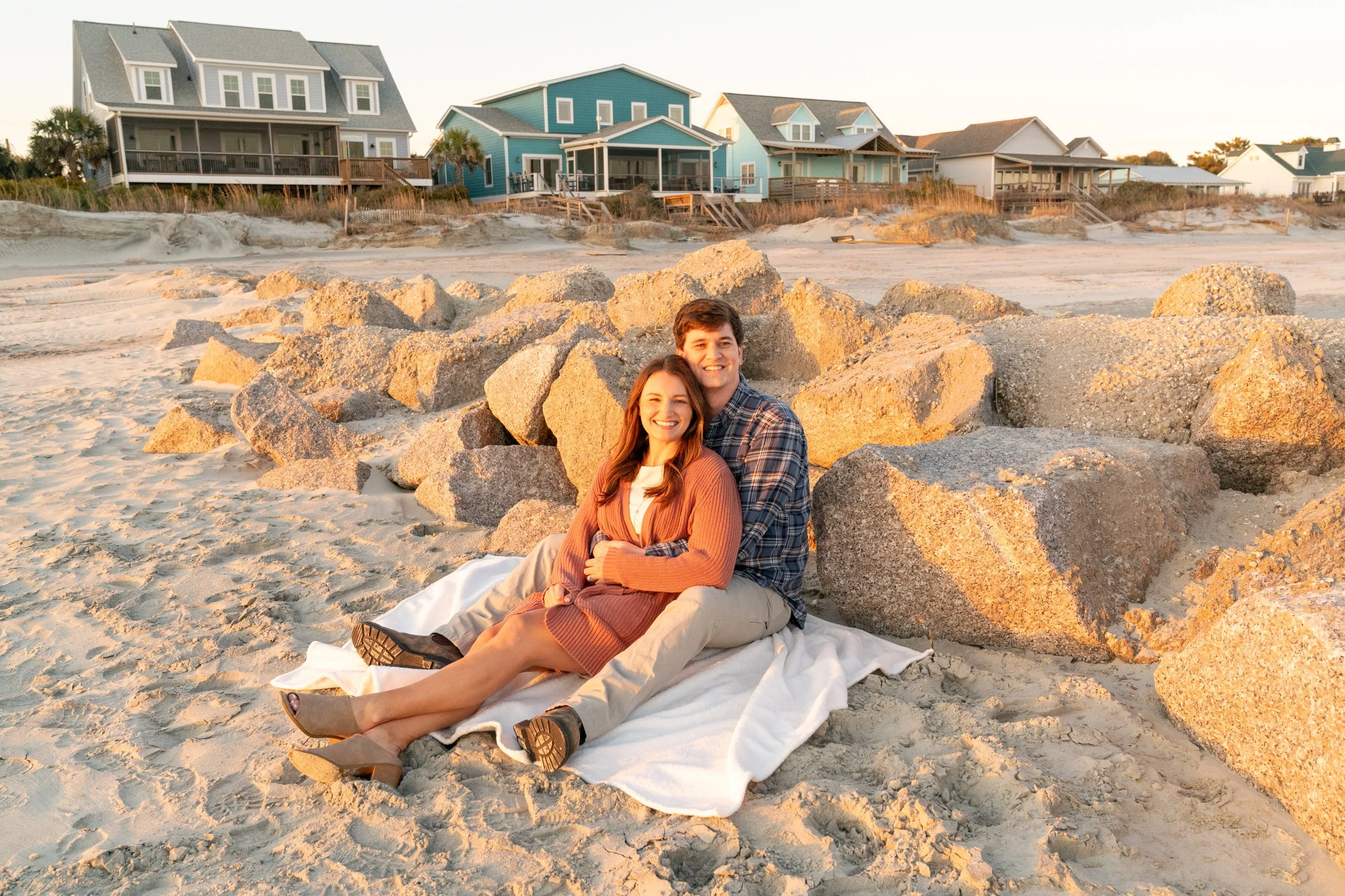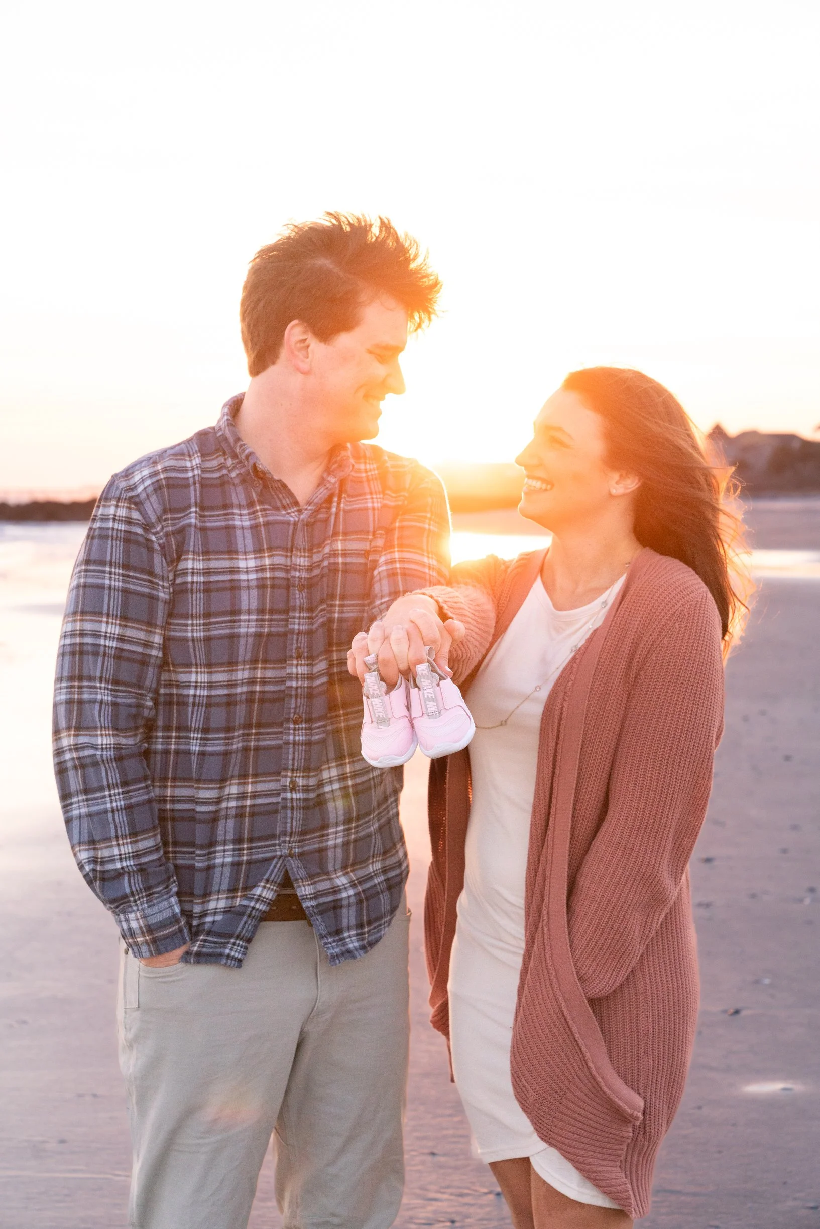 Last weekend, the sun peeked out just long enough in between winter storm systems for Shelby and Jay to come out to Folly Beach for an intimate session full of pure joy and love as they prepared to announce their new baby girl to the world!