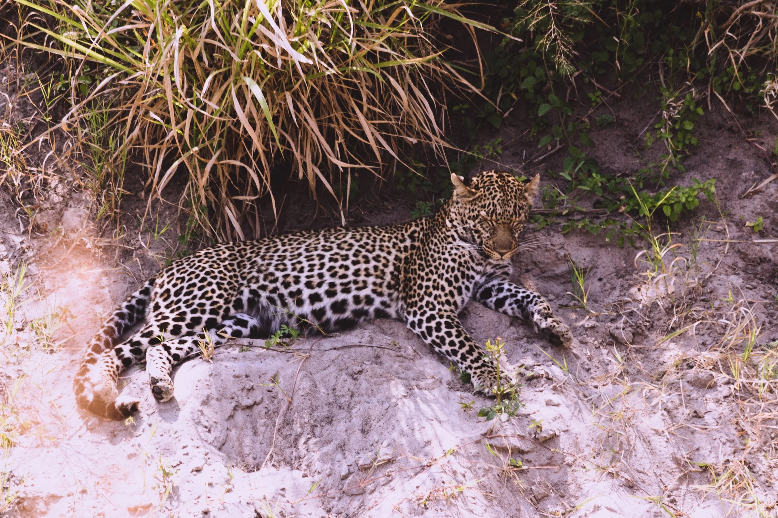 We feel so fortunate to have some truly incredible wildlife encounters over the course of our safari. Within the first 15 minutes of jumping off the plane, our guides Edison and Daniel spot 2 cheetah brothers lounging in the bush after a meal. Before we get to camp, we spot a male lion, greet an old tusker, see giraffe, ostrich, monkeys, zebras, nesting eagles, and more.
